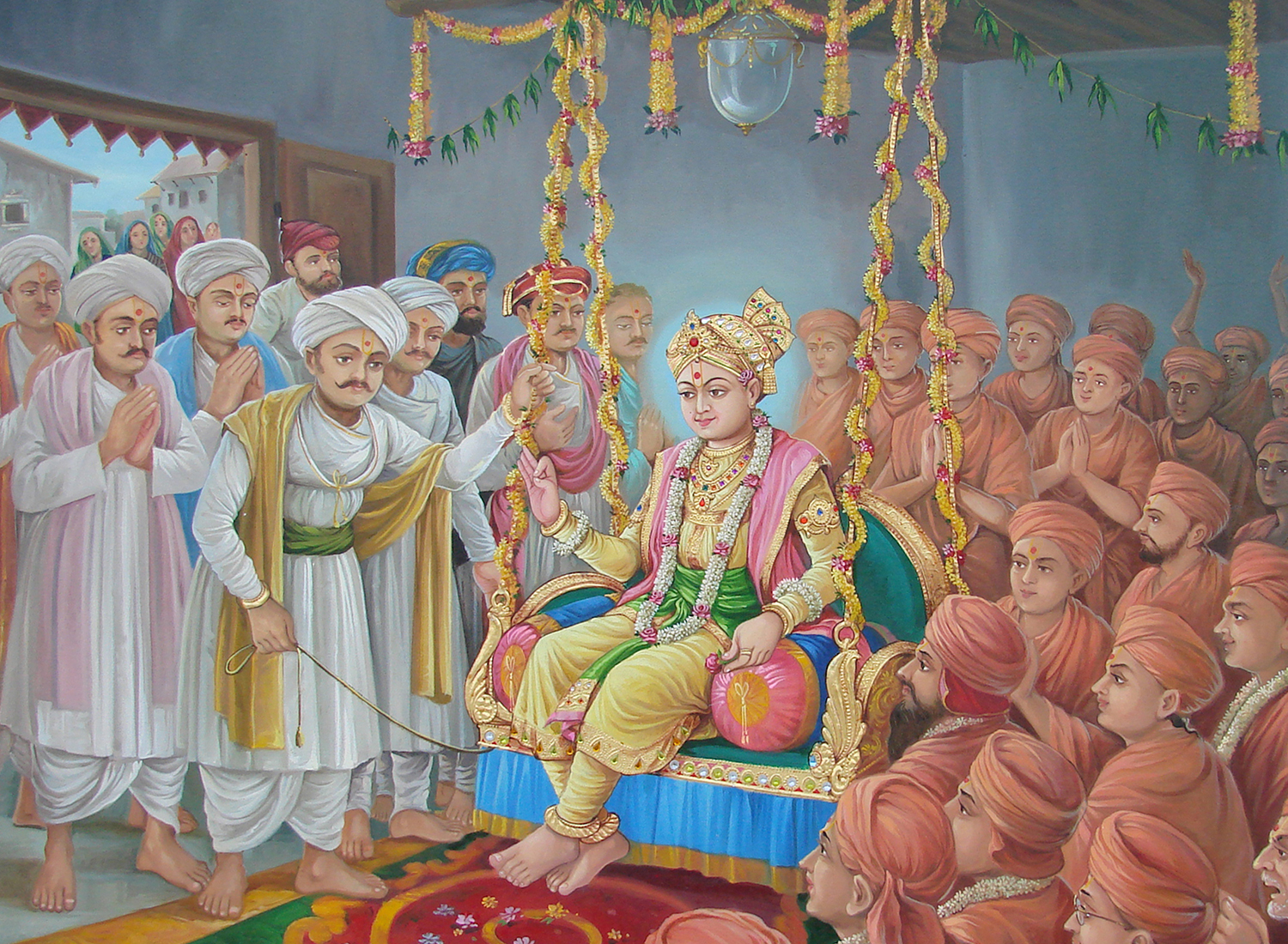 Hindola Utsav - Swing Festival - Celebrated with great love, devotion and festivity in Temples for one whole month between Ashadh and Shravan during Chaturmaas. The chal (mobile) Murti of the HariKrishna Maharaj is placed in a decorated swami (Hindolo) and swayed to and fro in divine devotion.